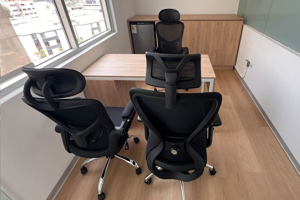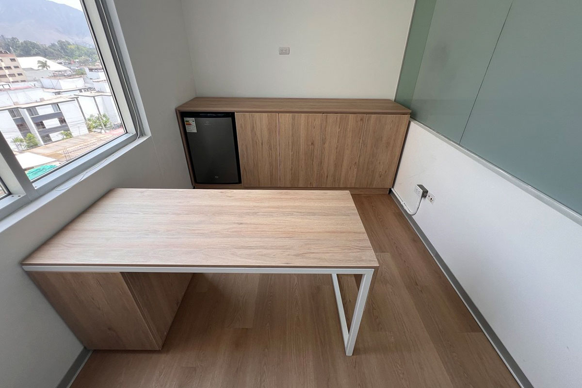 Descripción: Escritorio con base metalica y cajonería lateral.