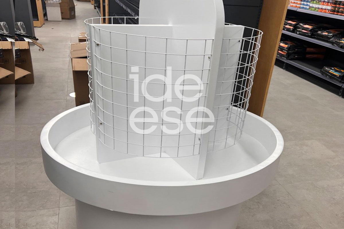 Descripción: Mueble para exhibición de juguetes con estructura metálica y cierre con malla protectora.