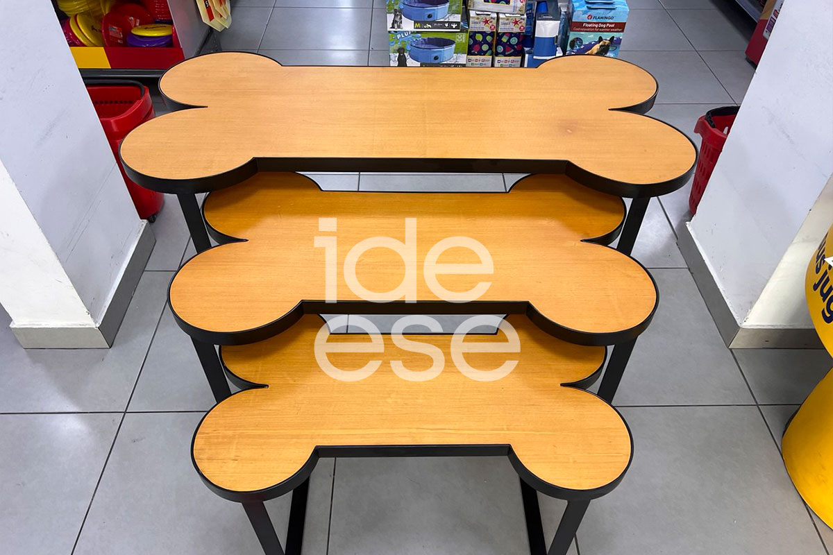 Descripción: Mueble tipo hueso con tablero en forma de silueta orgánica, en melamina natural y base metálica. Mueble tipo hueso con tablero en forma de silueta orgánica, en melamina natural y base metálica.