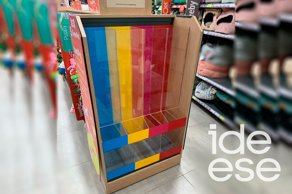 Descripción: Mueble modular en acrílico transparente, con divisiones para exhibición de productos.